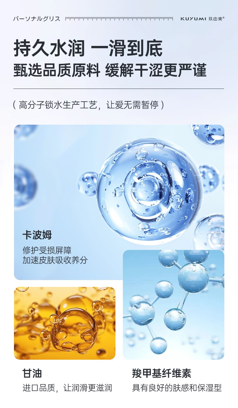 持久爽滑,溫和不致敏,不含工業(yè)香精、色素、礦物油、殺精劑等有害物質(zhì)