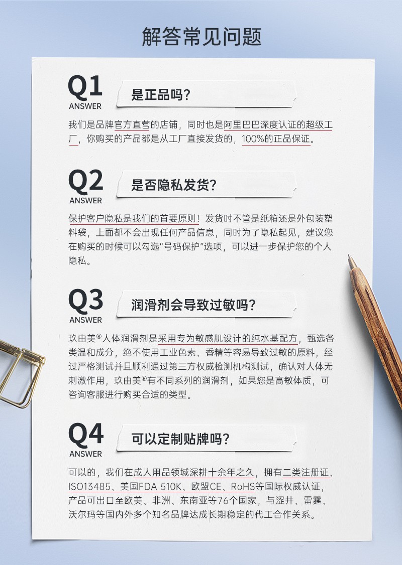 嚴(yán)格按照GMP生產(chǎn)規(guī)范!生產(chǎn)前原材料檢測,確保原料合格。生產(chǎn)中半成品檢測,確保生產(chǎn)過程無污染。生產(chǎn)后產(chǎn)品檢測并且出具出廠檢測報(bào)告,確保產(chǎn)品符合標(biāo)準(zhǔn),從原料到成品層層把關(guān),確保每一件均為精品。仿生體驗(yàn),與人體愛液無異